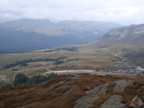 Prišel je tisti težko pričakovani ponedeljek, ko smo se ekipa štirih članov GRZS naložili v kombi in si za začetek – prihod je bil predviden do večera, do tja pa je nekako 400 km – privoščili turo čez dolomitske prelaze v prekrasnem vremenu. V torek zjutraj pa nič več heca in začnemo zares. Najprej uvodni sestanek, na katerem nam razložijo organizacijo treningov, način dela in predstavijo delovišča. Enkratno. Štiri različna delovišča za ekipno iskanje s helikopterskim prevozom, šest različnih delovišč z orientacijo in posameznim iskanjem, delovišče na melišču z ogromnimi skalnimi bloki in pa delovišče za stensko reševanje. Odločiti se moramo, kaj bi kdo delal, nobenih omejitev, lahko delam tudi en sam tip delovišča ves teden, če želim. Vendar se s Primožem odločiva, da bova poizkusila na vseh, za ekipno iskanje pa se prijaviva dvakrat, saj se nama zdi, da je to situacija, ki je najboljši približek akcijam v naših gorah. Na vseh deloviščih je poudarek na iskanju z utrujenim psom, kar pomeni, da je do vseh delovišč treba peš. Razložijo še druge podrobnosti in nam dajo 15 minut za pripravo na ogledno turo. Enkraten sprehod s kar nekaj prehojenimi višinskimi metri 😉 po grebenu nad prelazom, odkoder je krasen razgled na prelaz in odkoder se vidijo vsa delovišča.
